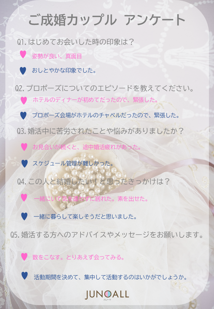 先日成婚のご報告をいただいた会員様よりアンケートをいただきました。
